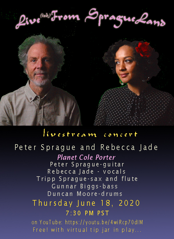 Peter Sprague and Rebecca Jade were awarded the 2018 Best Jazz Album by the San Diego Music Awards for their stellar “Planet Cole Porter” release. For this concert Peter and the group take hold of the classic songs of Cole Porter and presents them in a new color of samba, funk, salsa, and jazz. “Just One of Those Things” swinging fast and morphing over to funk, “Love For Sale” taking a trip to Cuba, and “I Get a Kick Out of You” heavily influenced by Eddie Harris’ “Freedom Jazz Dance.” They then intentionally go off course with a new reading of CSN’s amazing “Guinevere” and a sonic visit to the Beatles. It’ll be a great night of music.