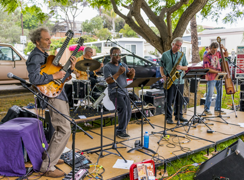 So with these convincing propaganda angles at play, consider joining us for these outdoor events this week. First up, on Friday afternoon I’m playing solo guitar at Flower Hill Promenade. It’s a gig that I strum usually two times a month and it’s always a good free flowing time of samba, jazz, and The Beatles. ![]() On Saturday at 3pm me and the boys are playing a set at the Leucadia Summer Fun on the 101 music festival. It’ll be Leonard singing, Duncan drumming, Mack bass-ing, Danny Green on the keys, and me guitar-ing. We’ve got Cream’s “Swlabr” in play along with Hoagy Charmichael, Beatles, Leonard Cohen, and a PS original. This event is north county bohemia cool in full regalia and I think you’ll dig it. Hope to see you there. ![]() Sunday at 5pm will find us setup and launching into two sets of music at the little park at the corner of La Flecha and Avenida de Acacias in downtown Rancho Santa Fe. It’s sponsored by the Village Community Presbyterian Church and we’ve had the good fortune of playing this yearly gig for many years. It’s a ton of fun complete with good folks, beautiful surroundings, and of course a delicious palette of jazz music. The band is Lizzi Trumbore on vocals and trombone, Tripp on sax, Mack on bass, Duncan on drums, Danny on keys, and me on the guitar. Lizzi is in town just for a week or so and we’re thrilled to include her into our loop. Come on out if you can… ![]() photo by Steve Grant That’s the word folks and hope to see you out there in the free air of June. Peter |