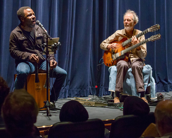 Absolutely spectacular in the most Zen of Loud silence. Peter & Leonard, thank you for a transcendent experience. The vocals were resonant and vibrationally alive in a unique way that I felt in my body. The way you feel percussion as a parade passes by. Visceral. Peter, your playing is inspired. There”s so much knowledge in your hands that it seemed they allowed your mind to momentarily escape to some other greater source of lnowing to retrieve a new expression of a familiar passage. Leonard, you played the box you sat on with finesse and mastery. People won’t get that! You’re a magician.